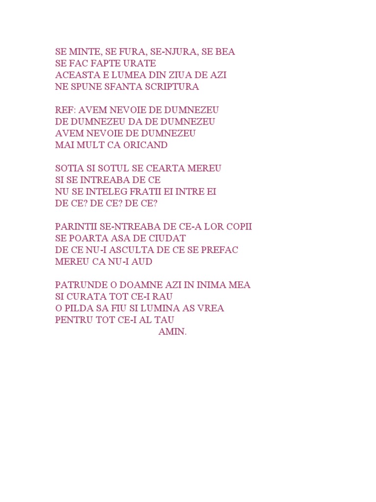 Avem Nevoie De Dumnezeu Versuri