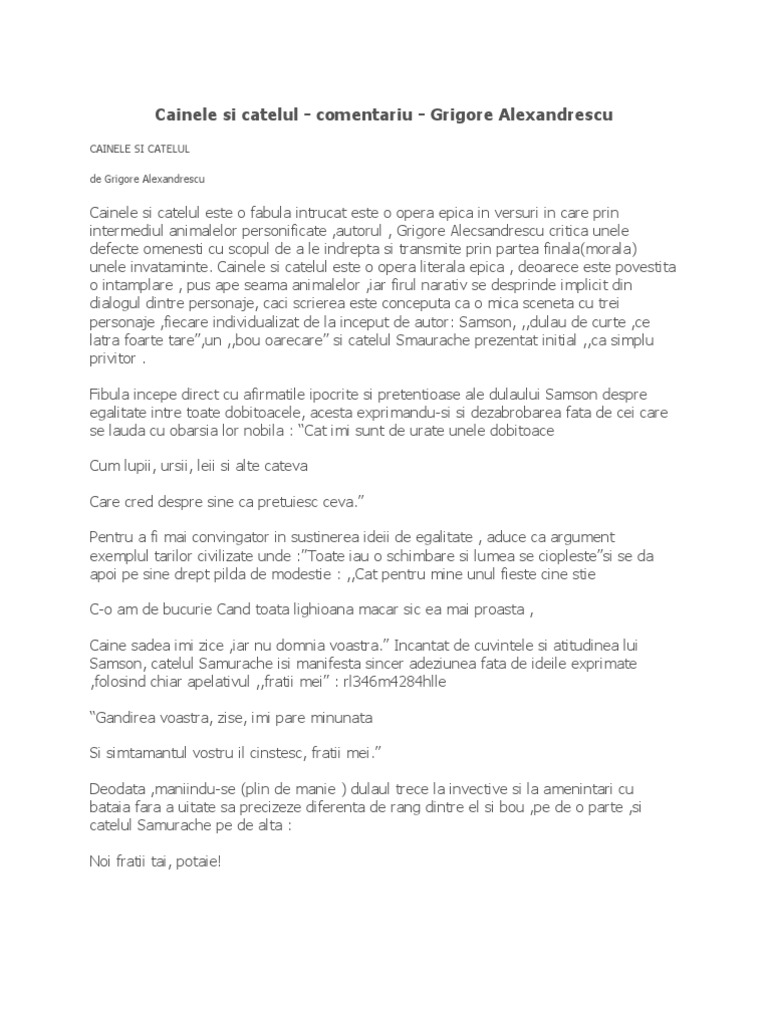 Cainele Si Catelul Comentariu Grigore Alexandrescu