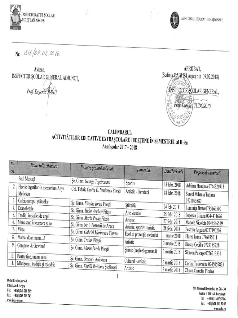 Secretariat Liceul Tehnologic Constantin Filipescu Caracal