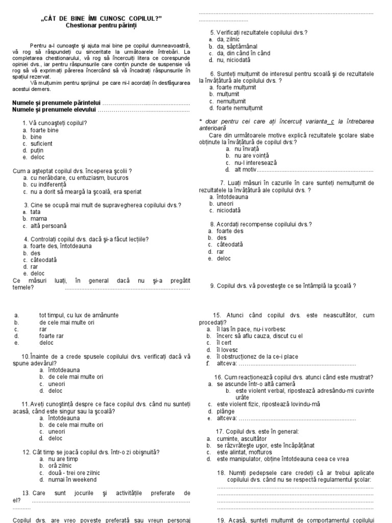 Chestionar Pentru Parinti Aracip
