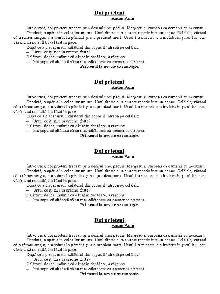 Proiect Didactic Doi Prieteni Dupa Anton Pann