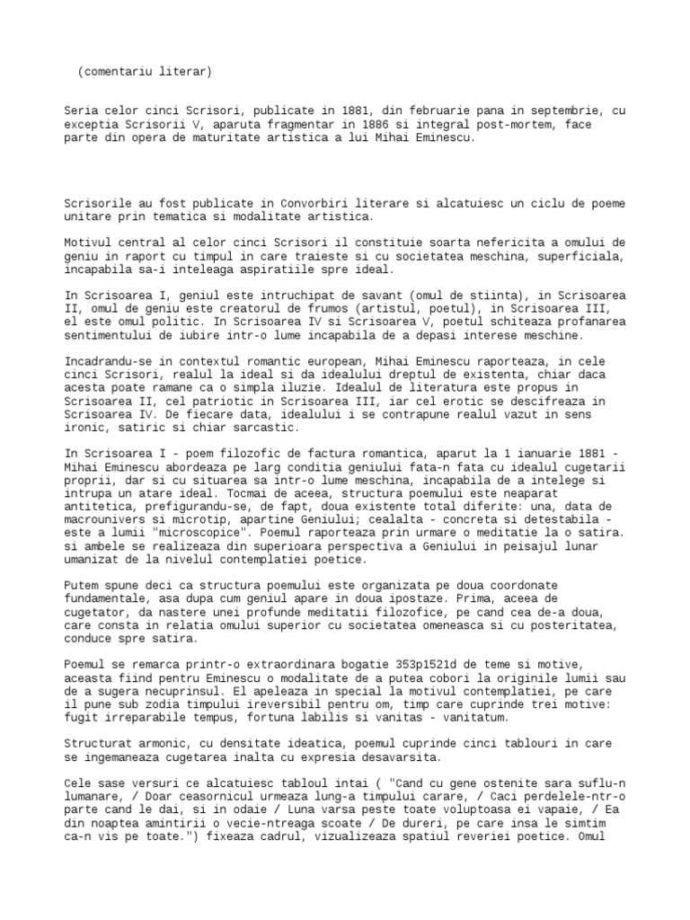 Două Comentarii Scrisoarea I De Mihai Eminescu Rezumate Cărți Citeste Cărți Online Pdf Caracterizări Referate Si Comentarii Cărți