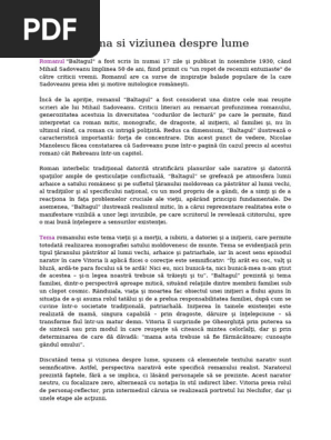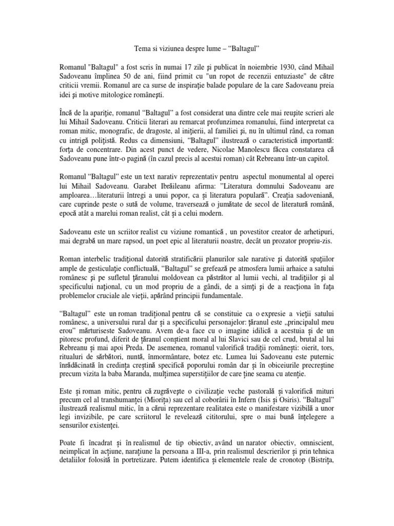Relatia dintre ordinea reala si cea transcendenta a lumii precum si conditia omului care traieste in zona de interferenta a lumii vechi cu cea noua. Baltagul de mihail sadoveanu roman mitic tema şi viziunea despre lume comentariu literar bacalaureat 2019 download referate limba si literatura romana profil mate info programa pentru bacalaureat 2020 baltagul de m. O secvență reprezentativă pentru tema și viziunea despre lume a romanului este cea care deschide una din cele mai. Tema și viziunea despre lume această formulare s a regăsit în subiectul iii din cadrul sesiunii august septembrie din anul 2012 pentru profilul uman iar profesorii noștri au încercat să îți pună la dispoziție o rezolvare cât mai complexă respectând reperele menționate în cerință.